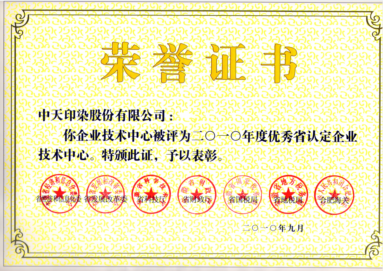 2010年度省優(yōu)秀企業(yè)技術中心