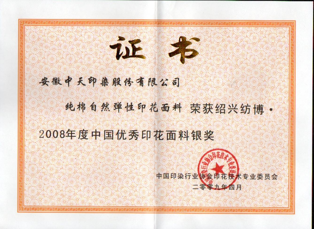 純棉自然彈性印花面料榮獲中國優(yōu)秀印花面料銀獎